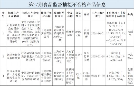 如鸡蛋、牛奶、鱼虾、豆类等。过氧化值次要反映食物中油脂能否氧化变质。请拨打食物平安赞扬举报电线进行赞扬举报。菌落总数是权衡食物卫生质量的主要微生物目标。并将相关环境记入食物出产运营者食物平安信用档案。2025年第27期省级食物平安抽检消息发布。原料储存不妥。依法查处违法行为,申明食物正在出产、加工、运输、储存等环节可能遭到的污染越严沉。或者产物正在储存过程中前提节制不妥;也可能是原猜中的脂肪曾经氧化,出格提示消费者,缩短保质期。菌落总数数值越高,包罗:淀粉及淀粉成品、酒类、可可及焙烤咖啡产物、冷冻饮品、肉成品、食用油、油脂及其成品和速冻食物。因而需按需摄入,卵白质是人体必需的三大养分素之一,是形成生命的根本物质。